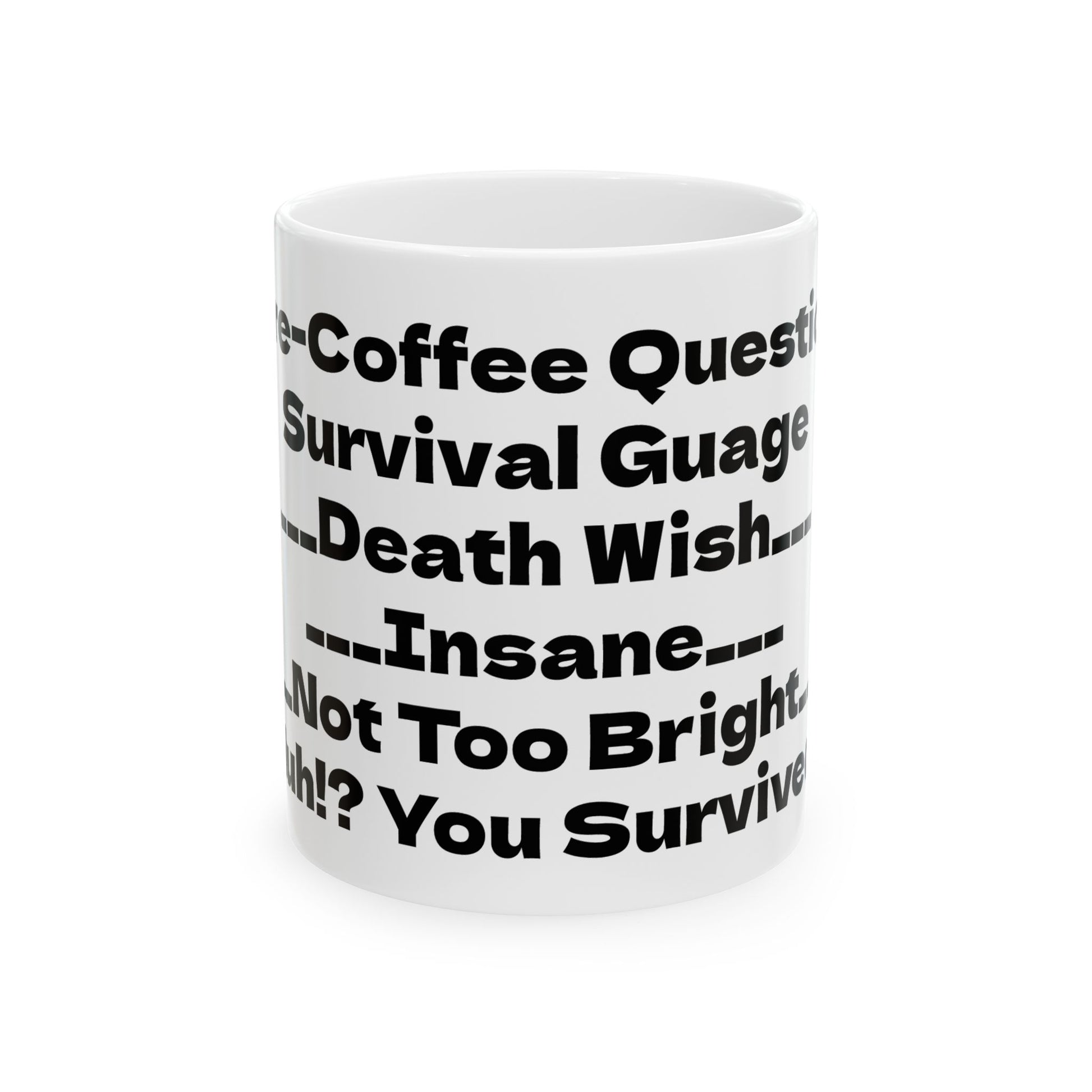Gamer Survival Mug - Coffee Questions, Death Wish, Insane - Funny Drinking Cup, Gift for Gamers, Coffee Lovers, Humor Mugs