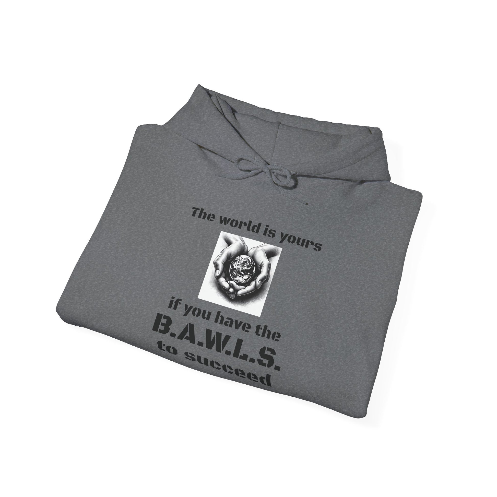 Motivational Hooded Sweatshirt - "The World is Yours" B.A.W.L.S. Message